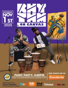 A vibrant celebration of art and culture featuring live music by Babatunde and Friends, real-time painting by Ofili Arts, and an interactive canvas experience for guests — all in a creative, welcoming atmosphere with light refreshments.